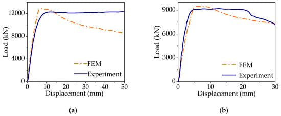 | No. | L × H × B (mm) | t (mm) | bs1 (mm) | bs2 (mm) | ts1 (mm) | ts2 (mm) | D (mm) | y (mm) | Nexp (kN) | NFEM (kN) | Error (%) |