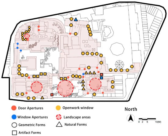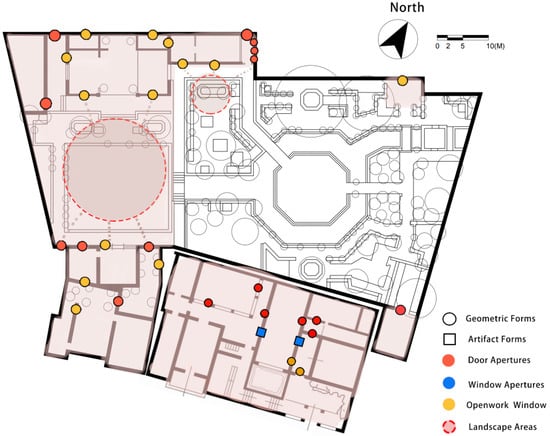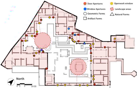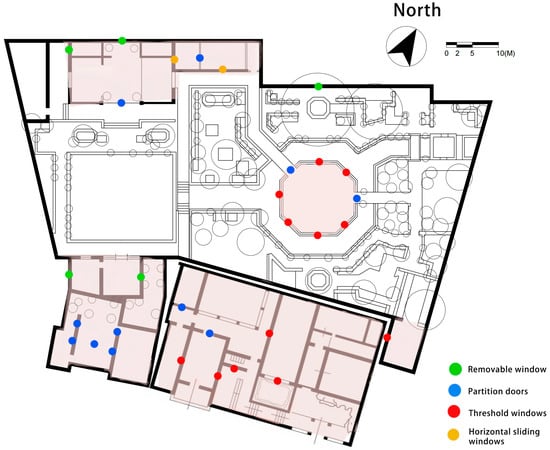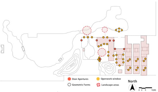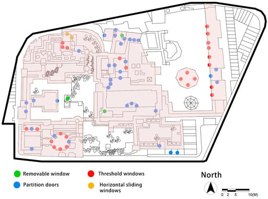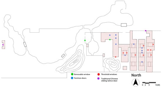 Location and distribution of permeable-type doors and windows in Yuyin Garden (source: authors).