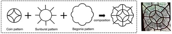 Overlay and reconfiguration pertain to the arrangement in which two or more different elements are concentrically overlaid to produce a novel design. An illustrative example can be observed in the pattern on the window sill of Qinghui Garden, where the central feature is a coin motif, which is surrounded by a layer of sun patterns and further embellished with begonia designs. This combination of various elements results in an innovative pattern that also conveys multiple layers of auspicious meanings (Figure 11).