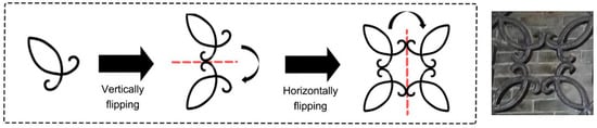 Axial symmetry is attained by reflecting a fundamental element across a central axis to produce a mirrored design. In Figure 13, the pattern on the partition door is formed by vertically and horizontally flipping the fish motif, thereby generating a novel design. This symmetrical configuration conveys a sense of stability and harmony to the observer. Due to Lingnan’s geographical position, nestled between mountains and the sea, a strong maritime culture has led the people of Lingnan to frequently incorporate fish motifs into their designs, symbolizing bountiful harvests and a peaceful, prosperous life.