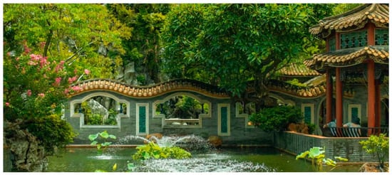 - Liang, M.J. Research on the Style of Classical Lingnan Gardens. Ph.D. Dissertation, South China University of Technology, Guangzhou, China, 2013; p. 11. [Google Scholar]