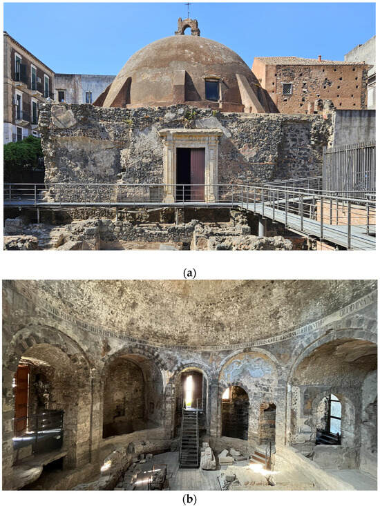 - Guastella, C. Ecclesia Sancta Maria de Rotunda: Vicende e prime ricostruzioni. In Le Terme della Rotonda di Catania; Branciforti, M.G., Guastella, G., Eds.; Regione Siciliana: Palermo, Italy, 2008; pp. 71–119. [Google Scholar]