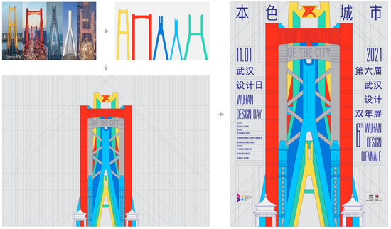 Wuhan is an industrial city, and bridges are an unavoidable symbol. With its enormous rivers and lakes, Wuhan cannot exist without bridges, and has become a “three-town” city. In the post-epidemic era, bridges mean connection. Bridges also have the image of starting a journey and building the future. For instance, Wuhan boasts strong bridges, water conservancy systems, high-speed railways, and a variety of buildings. Wuhan’s design achievements transform the beauty of engineering design into the beauty of creative life. The image planning of the exhibition space of the Wuhan Design Biennale can be expressed with engineering design elements. Therefore, how can we transform the city’s image into the central vision of the space and apply it to the visual elements of large-scale exhibitions? This study combines the practice of the Sixth Wuhan Design Biennale project, in which the authors participated, from the initial presentation of the city image in conceptual form to the gradual integration of the city image theory, and related research methods into the design process of the entire exhibition space, which has achieved relatively ideal design results. The image design of the exhibition space of this Design Biennale was presided over by the research team, which is an exploration of the urban image theory in creative practice. At the same time, it explores methods and mechanisms suitable for city image design.