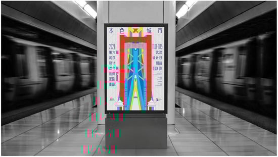 Second, the design process can have certain “open source” characteristics. “Open source” is a computer term, specifically referring to open-source code, that attracts relevant personnel to participate in modification and learning within a certain range of restrictions and even republishing [41]. In the context of urban image design, it primarily implies that the design facilitates the public’s access to certain content, enabling them to participate in the formulation of specifications. The designer alone does not complete the final result of the design: rather, under certain limited conditions, a collective creation takes place. This may enhance a stronger sense of collective identity. Urban image design often encompasses a wealth of content and should reflect a diverse range of aspects of urban culture. In the design of the 6th Wuhan Design Biennale, the authors invited primary school students to create children’s paintings with the theme of “Bridges in Wuhan” by identifying the bridges in the poster. These creations broke the established visual style of the main image and made the design softer and more vivid.