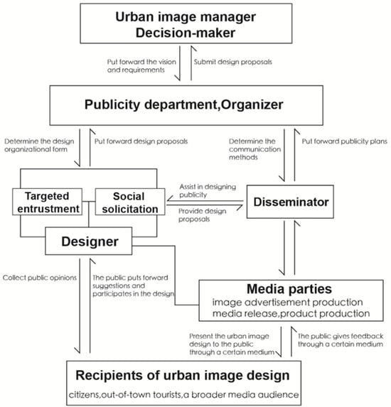 Three processes typically produce contemporary urban image design (see Figure 14). Firstly, the management department directly assigns the designer to design and establish a promotion partnership, relying on the designer’s influence. Secondly, the management department mobilizes the entire society to gather urban images, typically disseminated through the media. The purpose of this process is not only to collect design plans but also to expand publicity channels through collection activities. Third, through a combination of the two aforementioned processes and based on the results of the collection activities, the design plan is generated through targeted entrustment in the later stages (the image design of the Wuhan Design Biennale discussed above is produced in this way). These three processes have their advantages and disadvantages, but in terms of the current status of urban image design, no results that absolutely meet expectations have been produced, reflecting the differences and contradictions in cognition among the management, designers, and the public.