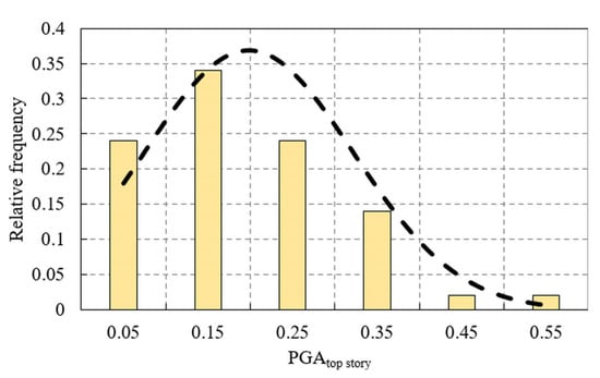 The histogram for the peak ground acceleration recorded at the top level of the instrumented buildings in Romania during the four earthquakes in the database is illustrated in Figure 5. The corresponding normal probability density function is also shown in Figure 5 for comparison purposes.