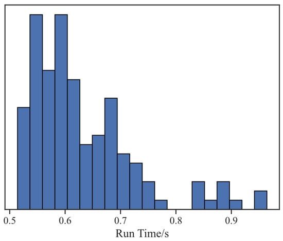 In order to evaluate the computational efficiency of the proposed method, the authors performed 3D reconstruction tasks on a computer equipped with an Intel i7-9700 CPU and a GPU GTX4060 with Python programming language. The average speed of a single reconstruction of the DUSt3R was 0.631 s, with 92.3% of the working conditions being able to complete the reconstruction of the initial point cloud in less than 0.8 s as Figure 12.