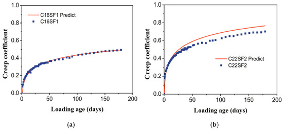 A comparison of the results of the proposed creep model with the experimental data for two specimens C16SF1 and C22SF2 is shown in Figure 2.