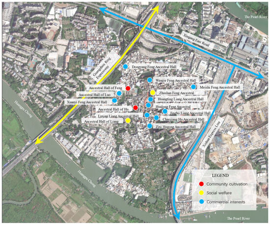 Informed by the micro-renewal of old villages and successful commercial programs such as Zengcuo’an Village in Xiamen, Fujian Province, and Hong Village in Anhui Province, Whampoa has adopted strategies to attract private investments and accommodate various cultural studios. These encompass both artist-driven and large-scale art enterprises. Motivated by commercial interests, several ancestral temples have been adapted to satisfy consumer needs and have expanded their functionality [60].