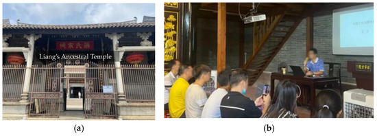 (a) Liang’s Ancestral Temple (Humanities and History Exhibition Hall); (b) Professor Yuan Yan (Dean of Guidi Academy)’s Public Welfare Sinology Lecture (Source: picture 4(a) was taken by the authors and picture 4(b) was provided by the manager of Guidi Academy).