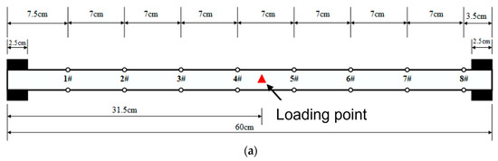 As shown in Figure 3, thin-walled hollow aluminum alloy tubes were used to construct the model piles. Strain gauges were installed at 7 cm intervals on both sides in a symmetrical arrangement to capture strain data throughout the experiment. To prevent damage to the strain gauges, holes were drilled 1.5 cm above each gauge, through which the wiring was passed into the pile and routed to the top. This experiment used the simple beam theory method for calibration, and the elastic moduli of A and B piles were 72.89 GPa and 67.47 GPa. Two model piles, A and B, were made in this experiment, and detailed parameters were shown in Table 2.