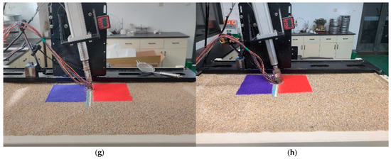 A-pile inclination cyclic loading test. (a) A-2 (θL = 20°) test before; (b) A-2 (θL = 20°) test after; (c) A-3 (θL = 40°) test before; (d) A-3 (θL = 40°) test after; (e) A-4 (θL = 60°) test before; (f) A-4 (θL = 60°) test after; (g) A-5 (θL = 80°) test before; and (h) A-5 (θL = 80°) test after.