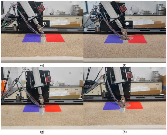 B-pile inclination cyclic loading test. (a) A-2 (θL = 20°) test before; (b) A-2 (θL = 20°) test after; (c) A-3 (θL = 40°) test before; (d) A-3 (θL = 40°) test after; (e) A-4 (θL = 60°) test before; (f) A-4 (θL = 60°) test after; (g) A-5 (θL = 80°) test before; and (h) A-5 (θL = 80°) test after.