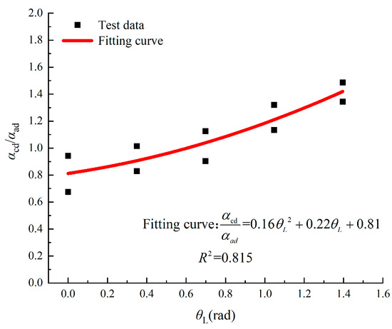 It can be seen from Figure 17 that the kuN/ku1 is obviously correlated with θL, and the expression of p2(θL) can be obtained by fitting it as follows: