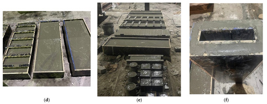 Details of PCS specimens. (a) Form work. (b) Placing UHPFC. (c) Bottom layer casting. (d) CLC placing. (e) Casting top layer. (f) Casting U-0-30/B.