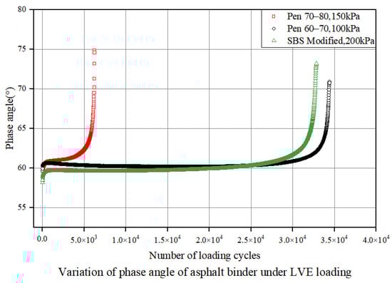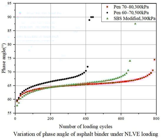 Phase angle variation curve of binder samples under NLVE stress conditions.