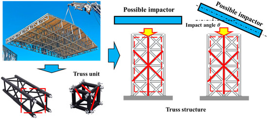Thin-walled structures are progressively utilized in automotive [1], aerospace [2], civil engineering, and several other industries due to their lightweight nature, superior energy absorption capacity, high strength-to-weight ratio, and elevated stiffness [3]. In civil engineering, the thin-walled tubular truss structure is mainly used in large-span structures, where it is vital for the architectural structures to absorb and distribute impact loadings effectively, as shown in Figure 1. It is essential to investigate the crashworthiness and the lightweight design of the thin-walled structures, which could be used as favorable parts for automotive bumpers [4]. As the optimized results show, numerous energy absorbers exhibit a variety of innovative structural designs, including hollow structures [5], multi-infill pattern structures [6], foam-filled structures [7], origami structures [8], and bio-inspired structures [9]. A conical structure is preferable in terms of energy absorption compared to a straight structure with a relatively stable load versus a displacement curve under oblique loading [10]. Furthermore, the design domain of conical-based thin-walled structures is larger than that of traditional straight structures, and they are less likely to fail due to global buckling [11].