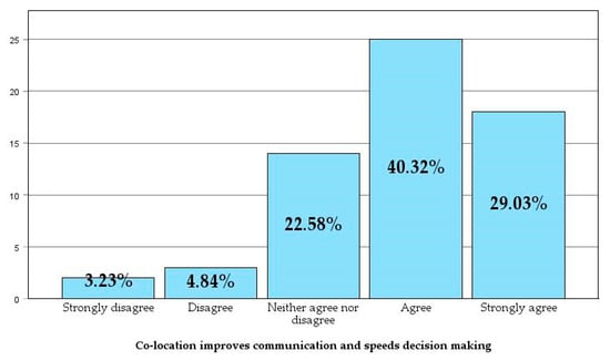 | q10 | Co-location, combined with intensive owner participation in the project, improves (a) communication by enabling faster information flow and accelerating decision-making, and (b) the sense of belonging to the project. | 3.52 | 4.18 | 0.66 | 19% |