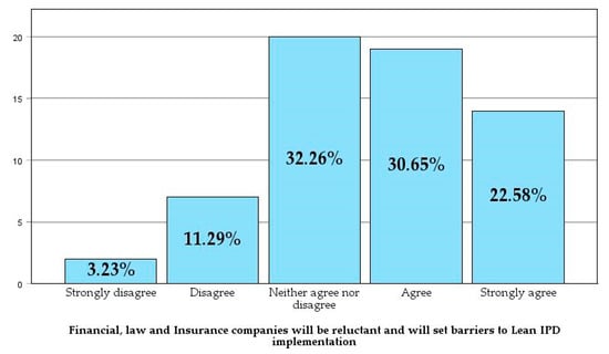 | q15 | Banks, lawyers, and insurers are significant barriers to the implementation of Lean IPD. It will be very challenging for them to understand and will likely impose considerable resistance. | 3.76 | 3.42 | −0.3 | −9% |