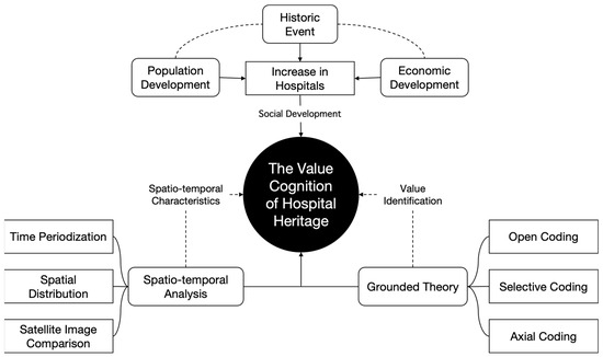 Grounded theory, a widely applied qualitative method [31,32,33,34], is particularly prominent in architectural heritage value assessment. By systematically collecting and analyzing raw data, this approach generates explanatory theories to explore the multidimensional values of hospital heritage, offering a novel pathway for scientifically evaluating architectural heritage [35,36].