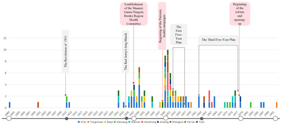 As a cradle of Chinese civilization and traditional Chinese medicine, Shaanxi has historically served as a multicultural convergence hub. The late Qing Dynasty witnessed missionary-introduced foundations of Western medicine [25]. This process accelerated during the Second Sino–Japanese War. At that time, the relocated Beiping Medical College catalyzed northern Shaanxi’s healthcare development. Subsequent Soviet-assisted hospital construction under the First Five-Year Plan and the Third Line Construction Industrialization triggered rapid medical infrastructure expansion through technological transfers and demographic growth [26].