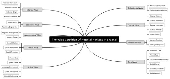 Interviews with people of different ages and occupations revealed the public’s diverse value cognition of Shaanxi hospital heritage. The study identified 31 categories and nine value levels in the heritage value system. Different groups interpret hospital heritage uniquely: