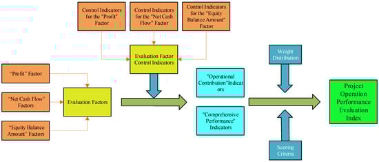 Based on the previous indicator exploration, this section introduces the corresponding control indicators for each indicator, aiming to ensure the scientificity and accuracy of the evaluation indicators. We also determined the weight distribution and scoring criteria and used the project operation performance evaluation index as the final presentation result of the model evaluation. The logical thinking diagram is shown in