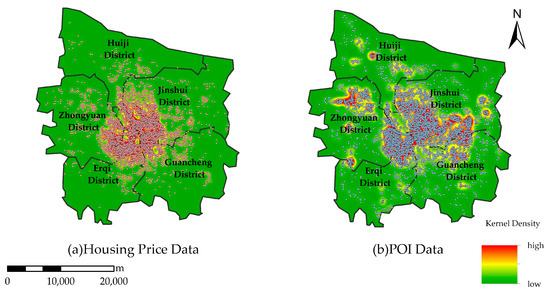 - Zhang, L.; Shi, D.; Zhu, L.; Wen, H. Influence of POI Accessibility on Temporal–Spatial Differentiation of Housing Prices: A Case Study of Hangzhou, China. J. Urban Plan. Dev. 2022, 148, 04022037. [Google Scholar] [CrossRef]