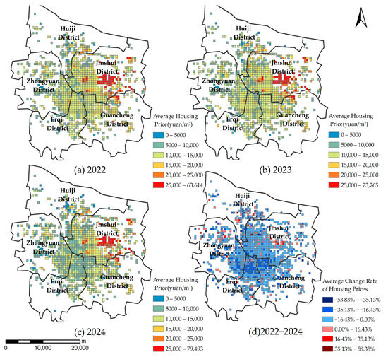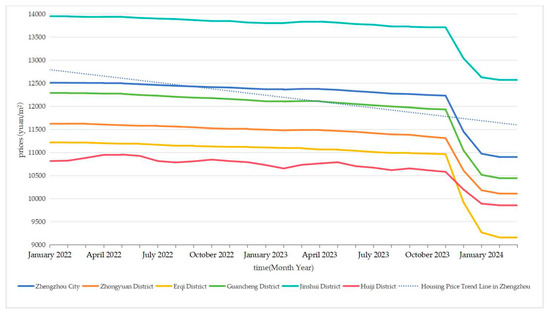 Wang, Y.; Cui, T.; Zhong, W.; Liu, W.; Hu, Q.; Zhang, B. Spatiotemporal Evolution and Influencing Factors of Residential Prices in Zhengzhou. Buildings 2025, 15, 667. https://doi.org/10.3390/buildings15050667