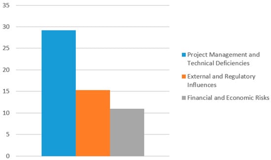 For equipment breakdowns and inefficiencies, a significant difference was found between residential and infrastructure projects (p = 0.001), as well as commercial and infrastructure projects (p = 0.000). For force majeure and environmental issues, several significant differences were found, with infrastructure project engineers perceiving these issues as more significant compared to residential (p = 0.009), commercial (p = 0.047), and industrial (p = 0.006) engineers. Furthermore, for safety issues and accidents, a significant difference was found between residential and infrastructure project engineers (p = 0.024).