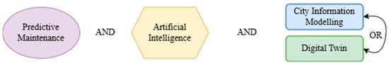 The SLR workflow and data collection and screening results are shown in Figure 2 below. There are four steps grouped under three stages. First, relevant publications were identified through keyword searches to ensure a broad coverage of related studies. These keywords were “Predictive Maintenance” AND “Artificial Intelligence” AND “City Information Modeling” OR “Digital Twin. CIM and UDT were used interchangeably in certain contexts as CIM may be seen as precursors to Urban or City DTs [52,53].