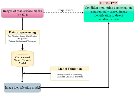 Meta-analysis results in Table 1 indicate that sectors such as manufacturing, oil and gas and infrastructure have deployed ML and DT to achieve a more efficient PM. This case scenario has a condition monitoring mechanism using deep learning algorithms to detect degradation and its severity in systems [81] in addition to its reliance on IoT-based data. An R-CNN approach to object detection is used, where data-driven PM is unable to identify sudden failure. Figure 14 below shows the AI training workflow in which an AI model is trained to identify road cracks whose wear may not have been in accordance with IoT predictions.