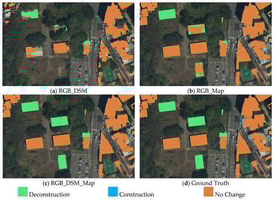 | Case 3. RGB_DSM_Map | RGB (t1) (3 bands) | RGB (t2) (3 bands) | DSM (t1), DSM (t2) (2 bands) | Building map (t1) (1 band) |