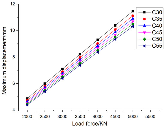 The variation law of pile foundation displacement with concrete grade under design load.