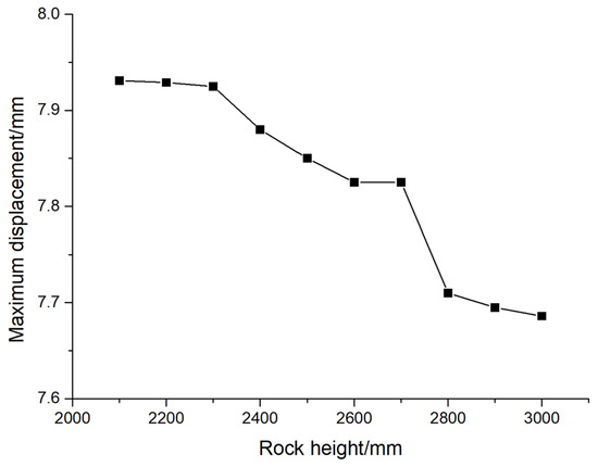The variation curve of the maximum displacement of pile foundation with the height of rock.