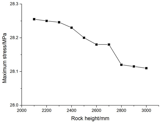 The variation curve of the maximum stress of pile foundation with the height of rock.