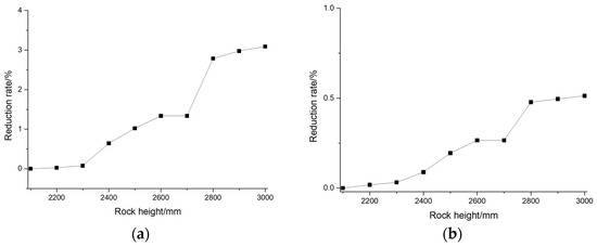 The reduction rate of (a) maximum displacement and (b) maximum stress of pile foundations under different rock heights.