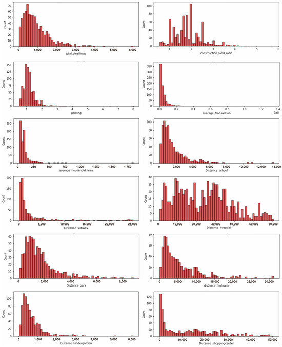 74]. It is difficult to directly define the attribute for each variable used in this study, because they may be associated with more than one attribute. We primarily focus on the effects of proximity to service amenities and public transport on housing prices, but we still accounted for other attributes. The variable C_ratio considers the ratio between construction area and land use area, which can represent the density of a community to a certain degree. Similar situations also exist when it comes to Park_P, namely parking plots per household. Moreover, the varying functional designations of each administrative district can indirectly influence the design concepts and approaches of neighbourhoods. As we discussed in