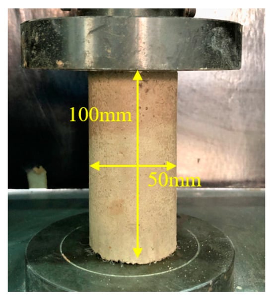 where is the unconfined compressive strength of the sample, Mpa; F is the maximum load when the specimen is destroyed, and N; A is the cross-sectional area of the sample, mm2.