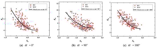 Scatter plots of skewness and kurtosis of roof openings and closures on the roof surface under discrepant wind orientation angles: (a) = 0°; (b) = 90°; (c) = 180°.