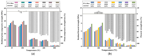 Residual and loss of compressive and flexural strengths of alkali-activated mortars at elevated temperature [79]. (a) Compressive strength. (b) Flexural strength.