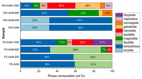 Phase changes in FS-AAM and WS-AAM calcinated at various temperatures [58].