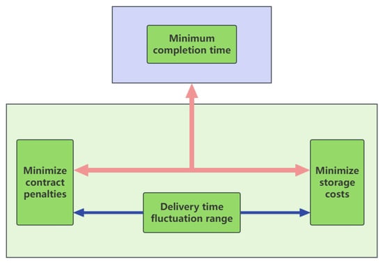 Establishing the Fitness Function: The first optimization objective function of the model is the contract penalty and storage costs, and the second is the production completion time. These two objective functions serve as the fitness function for the population, with the fitness value indicating the quality of a solution. The smaller the fitness value, the better the solution, making it more likely to be selected.