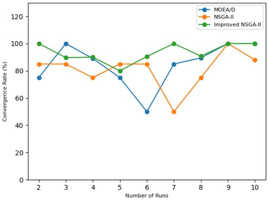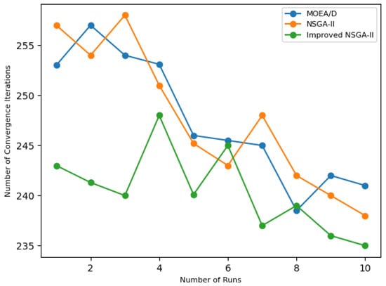 The incorporation of adaptive crossover and mutation operators in the NSGA-II offers significant advantages. The adaptive strategy, by dynamically adjusting the probabilities of crossover and mutation, not only fosters a balance between global exploration and local exploitation, but also effectively prevents premature convergence to suboptimal solutions. This enhances the algorithm’s adaptability to diverse problem characteristics. Furthermore, the adaptive operators maintain population diversity, reduce ineffective searches, and improve the algorithm’s efficiency and performance.