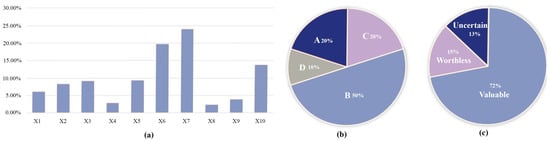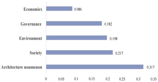 Figure 3, Figure 4 and Figure 5 summarize the weighted results of the indicator system for the adaptive reuse of industrial buildings in the context of Shenzhen’s high-density urban development. This chart illustrates the relative assessment weights across three categories. The “building structure adaptability” (A) category holds the highest weight at 0.317, followed by the “social dimension” (C) with a weight of 0.217. The “environmental dimension” (B) ranks third, with a weight of 0.198. The importance of building entity adaptability lies in its direct impact on structure, material recyclability, and lifespan. These factors determine the feasibility and economic viability of the renovation. The high weight of the social dimension underscores the critical role of public participation, cultural heritage, and social cohesion in modern urban renewal. Although the environmental dimension ranks third, its position is expected to improve in the future, particularly in the context of deepening sustainable development and the need to address climate change and resource scarcity. The scientific establishment of these weights not only provides a basis for the current study but also guides policymakers in prioritizing and directing planning efforts in practical applications.