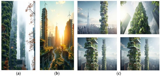 - Designboom. Midjourney Envisions a Futuristic Sustainable City with Air-Purifying Biophilic Skyscrapers. Available online: https://www.designboom.com/architecture/ai-futuristic-sustainable-city-air-purifying-biophilic-skyscrapers-manas-bhatia-08-22-2022/ (accessed on 20 November 2024).