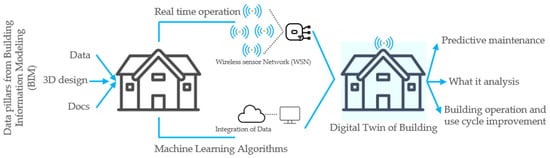 - Khajavi, S.; Motlagh, N.; Jaribion, A.; Werner, L.; Holmstrom, J. Digital Twin: Vision, Benefits, Boundaries, and Creation for Buildings. IEEE Access 2019, 7, 147406–147419. [Google Scholar] [CrossRef]