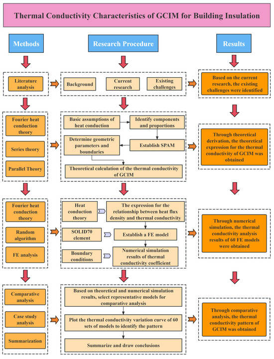 Given the existing challenges in the current research, a new theoretical calculation model for the TC of GCIM is proposed based on traditional series and parallel models. The theoretical expression is derived, and combined with numerical simulation, further exploration of the variation characteristics of the TC of GCIM is conducted. The specific research approach is shown in Figure 1.