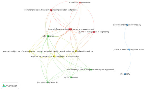 Table 3 lists the 14 journals with more than 2 publications. The total link strength reflects the mutual relationships with peer journals. The American Journal of Industrial Medicine holds the highest citation count (239), while the Journal of Construction Engineering and Management has the highest total link strength (62).