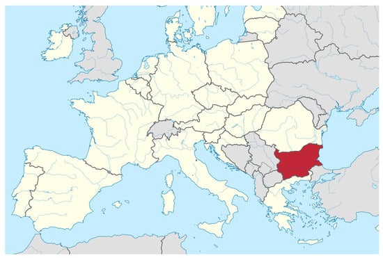 - The Republic of Bulgaria on the Map of Europe. Available online: https://upload.wikimedia.org/wikipedia/commons/0/05/Bulgaria_in_European_Union.svg (accessed on 20 January 2025).